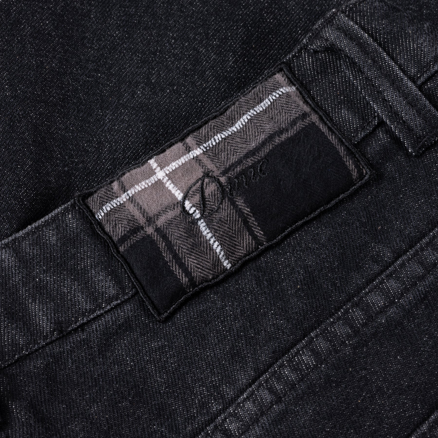 Flannel embroidered patch on right back waistband